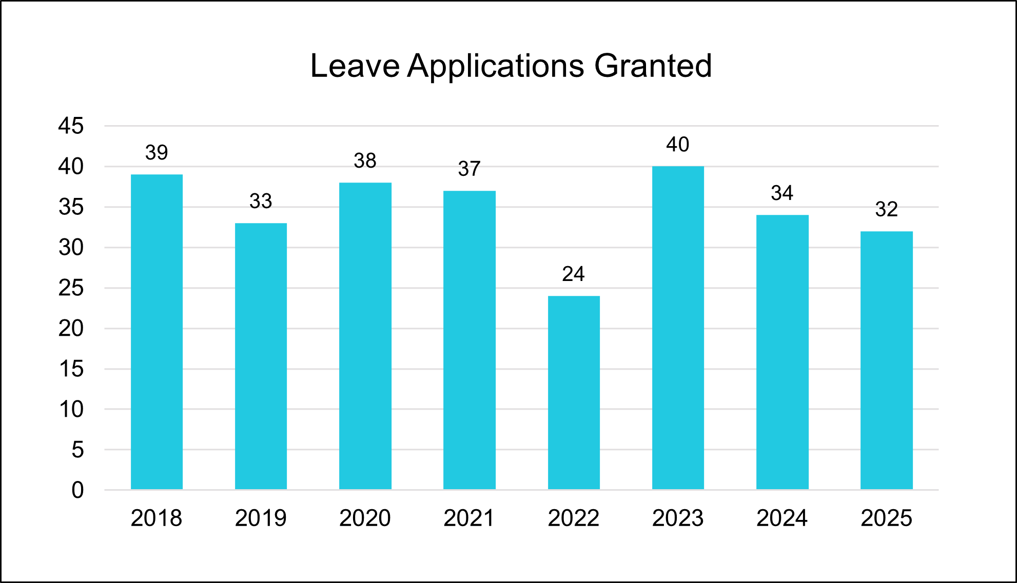 In 2025, the median time to decide a leave application was just 160 days.